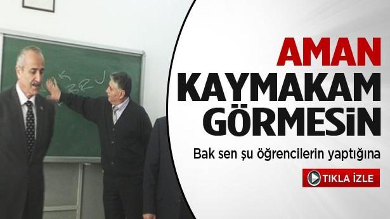 Daha sonra yazıyı fark eden İlçe Milli Eğitim Müdürü Yüksel Gültekin tahtanın korumasını kapatmak istedi ama başarılı olamadı.
