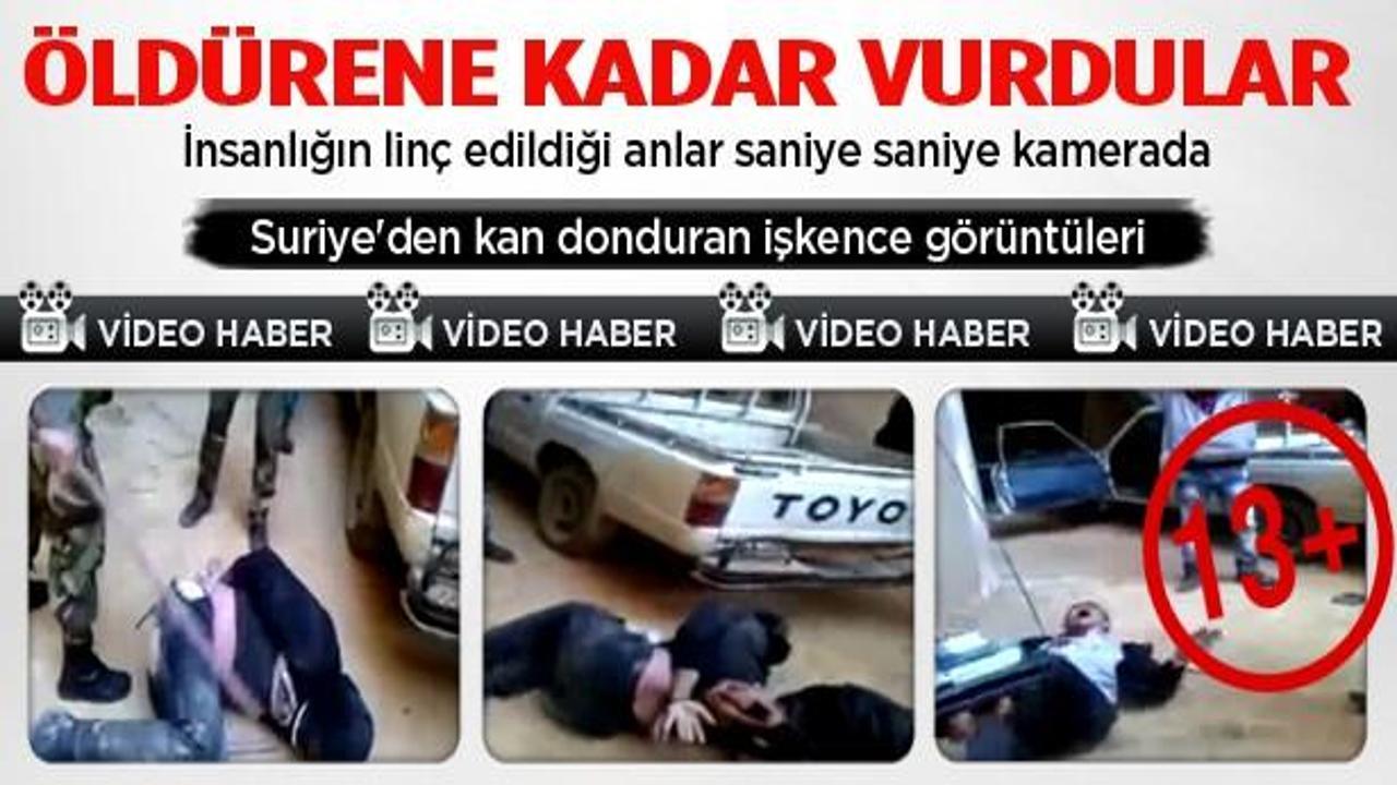 Suriye'de Beşşar Esed'e bağlı birliklerin muhaliflere yönelik işkence timinin, iki muhalif genci öldüresiye dövmesi saniye saniye kameralara yansıdı.