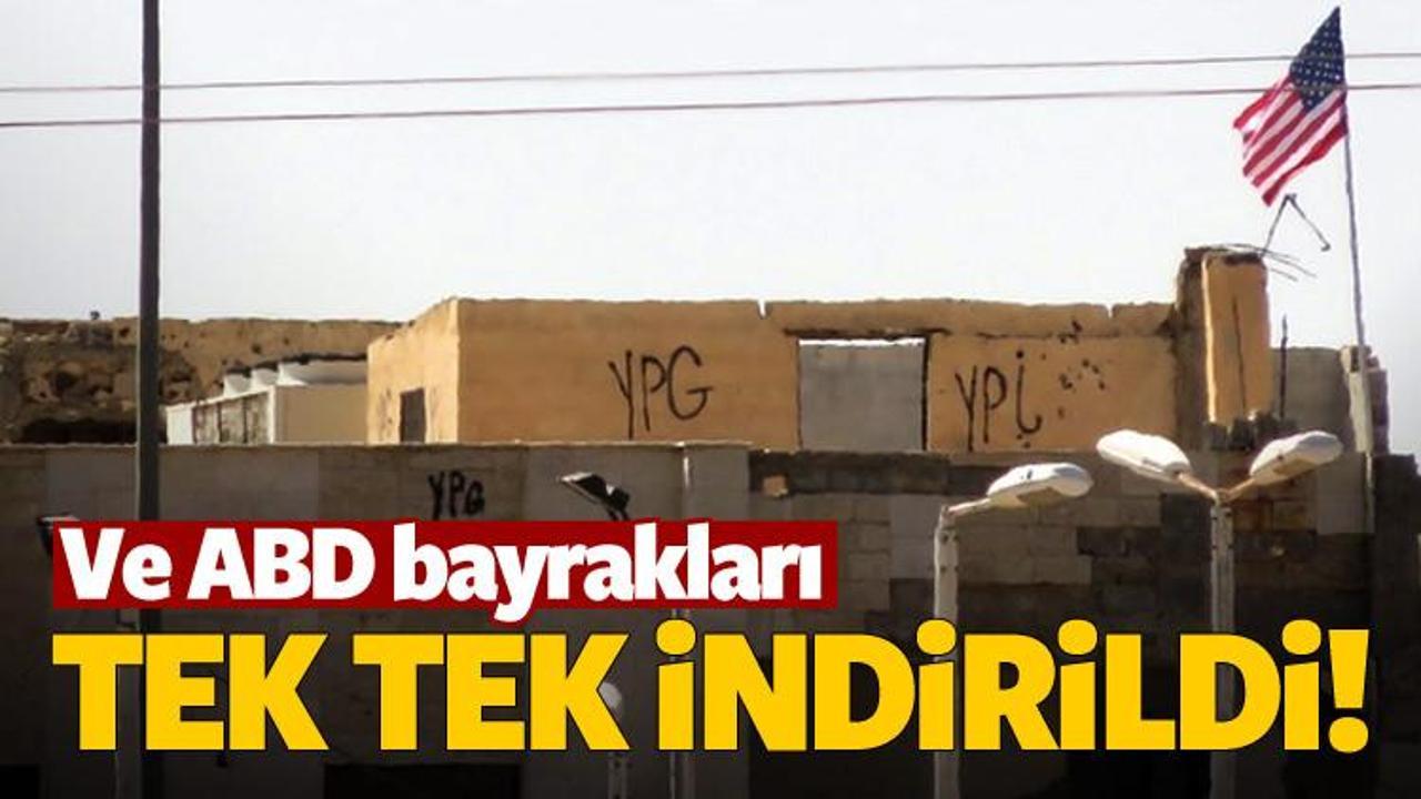 Tel Abyad'da PYD'nin binalarında bulunan ABD bayrakların tek tek indirildi.