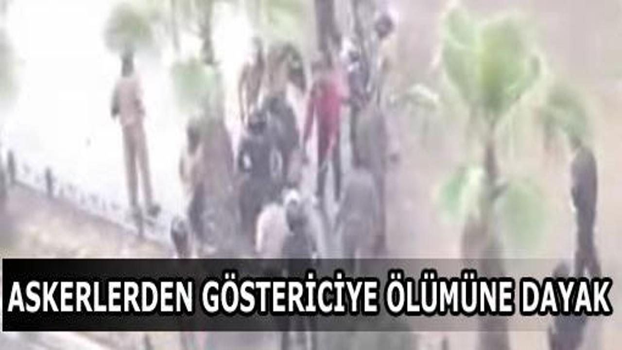 Sivil ve resmi kıyafetli onlarca askerin yakaladıkları bir göstericiyi dakikalarca darp ettikten sonra yerlerde sürüklemeleri cep telefonu kamerasına saniye saniye yansıdı.