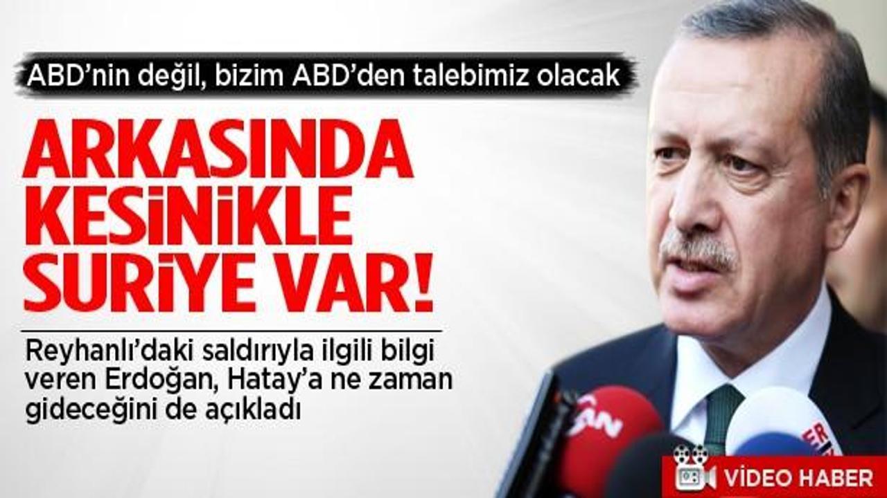 Başbakan Erdoğan Hatay'ın Reyhanlı ilçesindeki patlamayla ilgili soruları yanıtladı. Her türlü bilginin ellerinde olduğunu ve yakında açıklayacaklarını söyleyen Erdoğan "arkasında kesinlikle Suriye rejimi var" dedi.