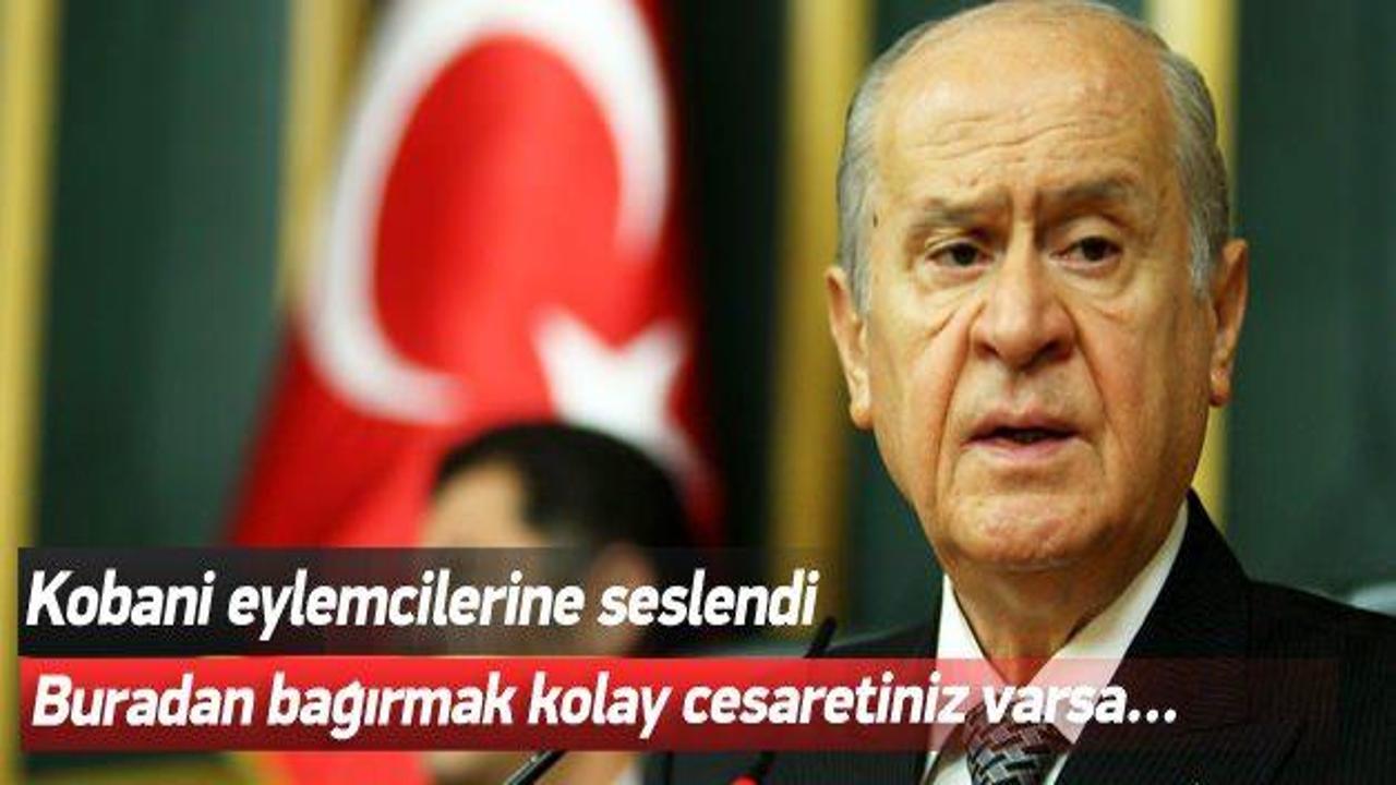MHP'nin grup toplantısında Kobani eylemcilerine tepki gösteren Bahçeli; 'Cesaretiniz varsa IŞİD'in kaşısına çıkın' dedi.