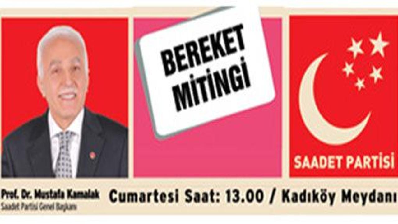 Bereket Mitingleri adını verdiği seçim gezilerine devam eden Saadet Partisi, bugün dört ilde miting düzenliyor. İstanbul'daki miting Kadıköy meydanında..