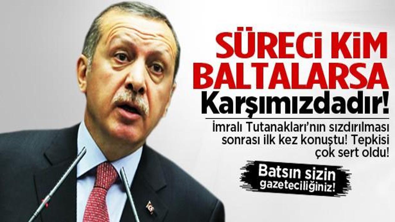 İmralı Tutanaklarının sızdırılmasının ardından ilk kez konuşan Erdoğan milletin huzuru için tavizsiz her şeyi yapacaklarını söyledi. "Medya tarafından tuzaklar kuruluyor" diyen Erdoğan o manşet için 'Gazeteciliğin batsın' dedi, "Süreci tıkayan bizi karşısında bulur" diyerek uyardı.