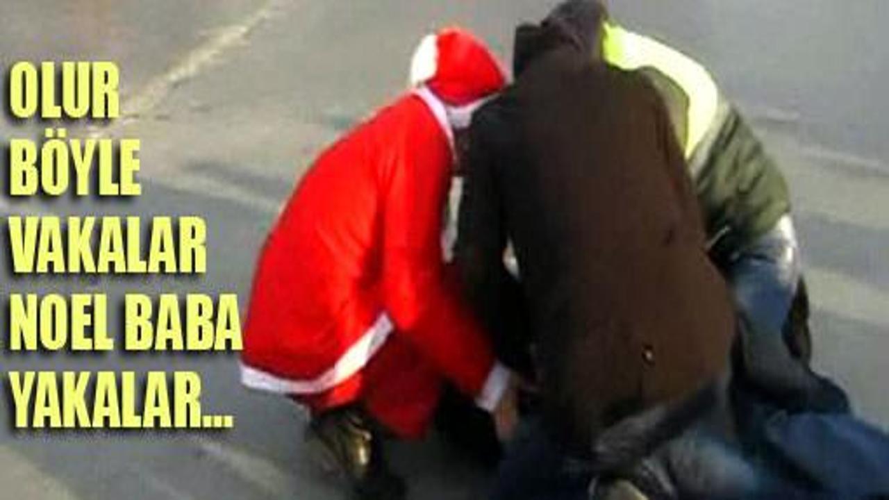 Taksim'de tebdili kıyafet tatbikat yapan Güven Timleri, temsili alışveriş yapan bir kadının çantasını çalan yan kesiciyi kısa sürede yakaladı. Yankesici kılığındaki polisi, Noel baba kılığındaki meslektaşları kelepçeledi.