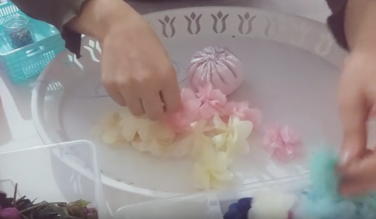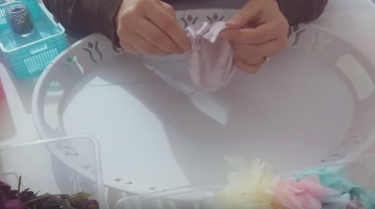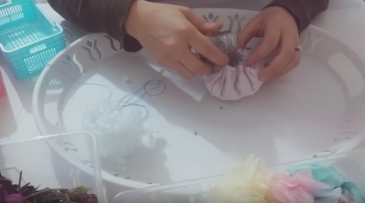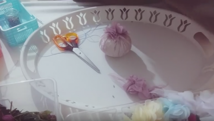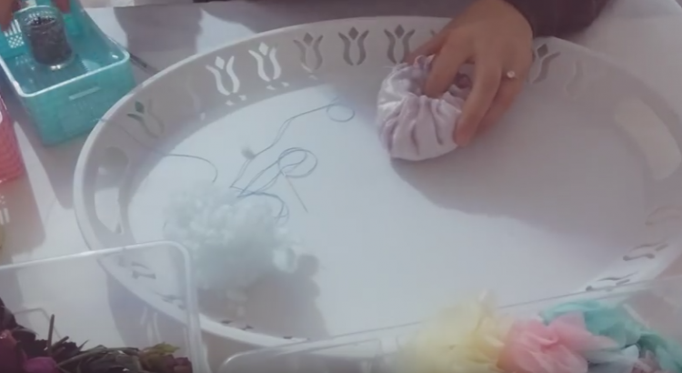 Silikonların üzerine bir miktar kuru lavantaları ekleyelim. Kesenin uçlarını iğne iplikle birleştirelim.