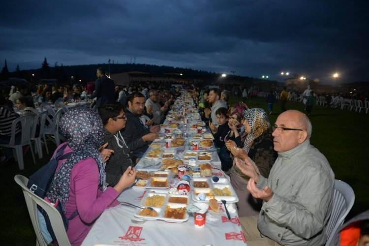 Bilecik Belediyesi tarafından Ertuğrulgazi Mahallesi’nde 3 bini aşan mahalle sakini, ’Kayı’ işareti şeklinde dizilen iftar sofrasında bir araya geldi.