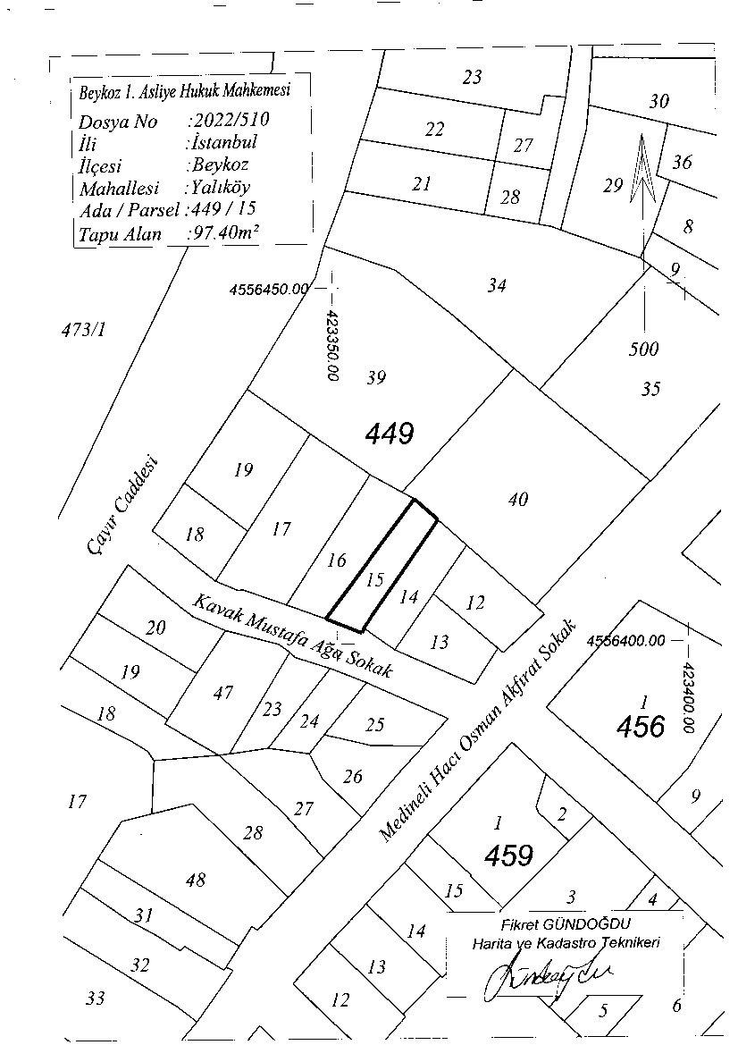 Taşınmaz adresi : Beykoz ilçesi, Yalıköy mahallesi, 449 ada,15 parsel 97,40 m2 yüzölçümlü , arsa vasfındaki taşınmaz
