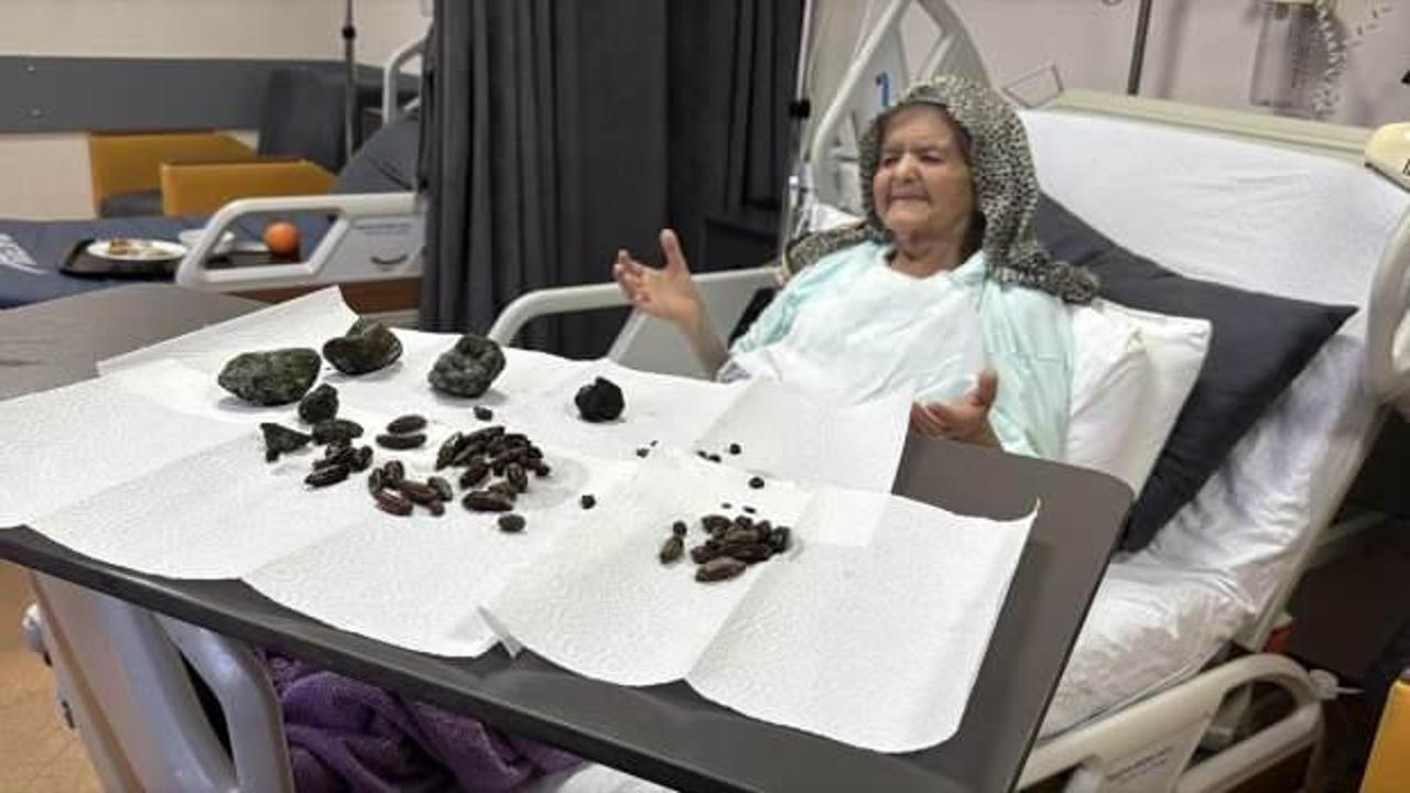 Zonguldak'ta karın ağrısı ve kusma şikayetiyle hastaneye başvuran 92 yaşındaki Şerife Ay'ın midesinden ve ince bağırsağından ameliyatla 28 hurma ve 35 zeytin çekirdeği ile 5 taş çıkarıldı.