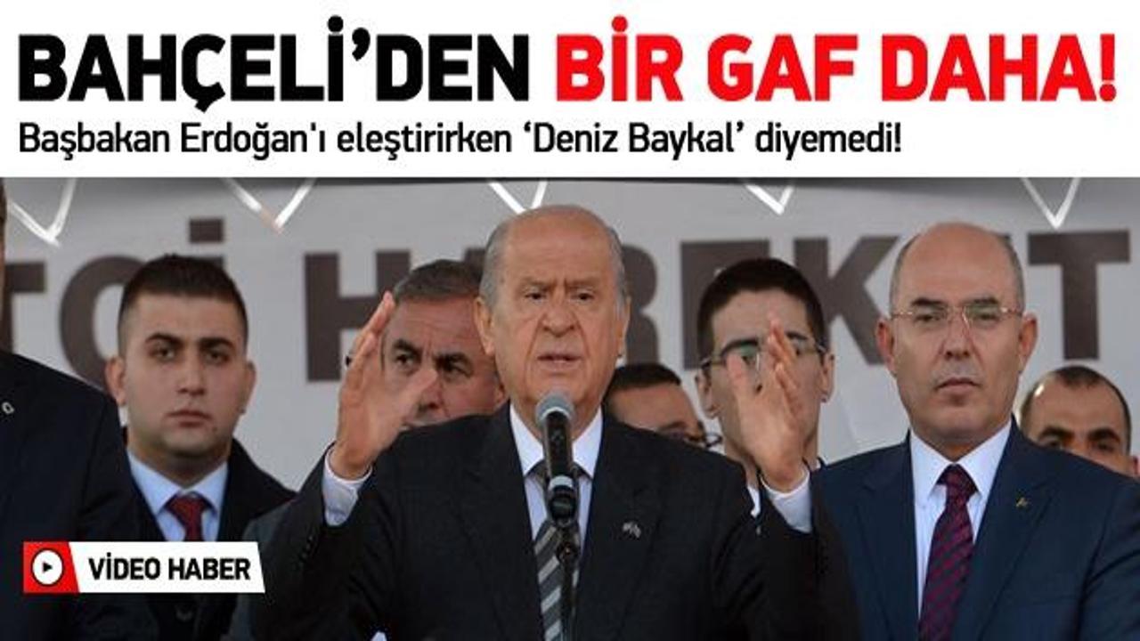MHP lideri Devlet Bahçeli, Başbakan Erdoğan'ı eleştirirken Deniz Baykal ismini yanlış kullanarak "Sayın Deniz Balkan Bey" dedi.