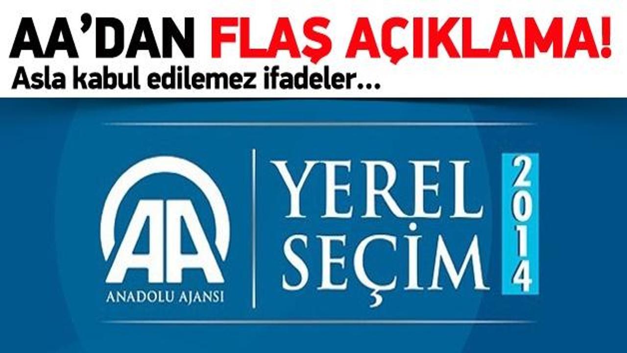 Anadolu Ajansı'ndan yapılan açıklamada, ''2014 Yerel Seçim sonuçlarını veren Anadolu Ajansının yayınlarını bazı televizyon yorumcuları ve siyasilerin "güvenilmez, manipülasyon amaçlı, yalan" şeklinde asla kabul edilemez ifadelerle karalamaya çalıştığı görülmüştür.