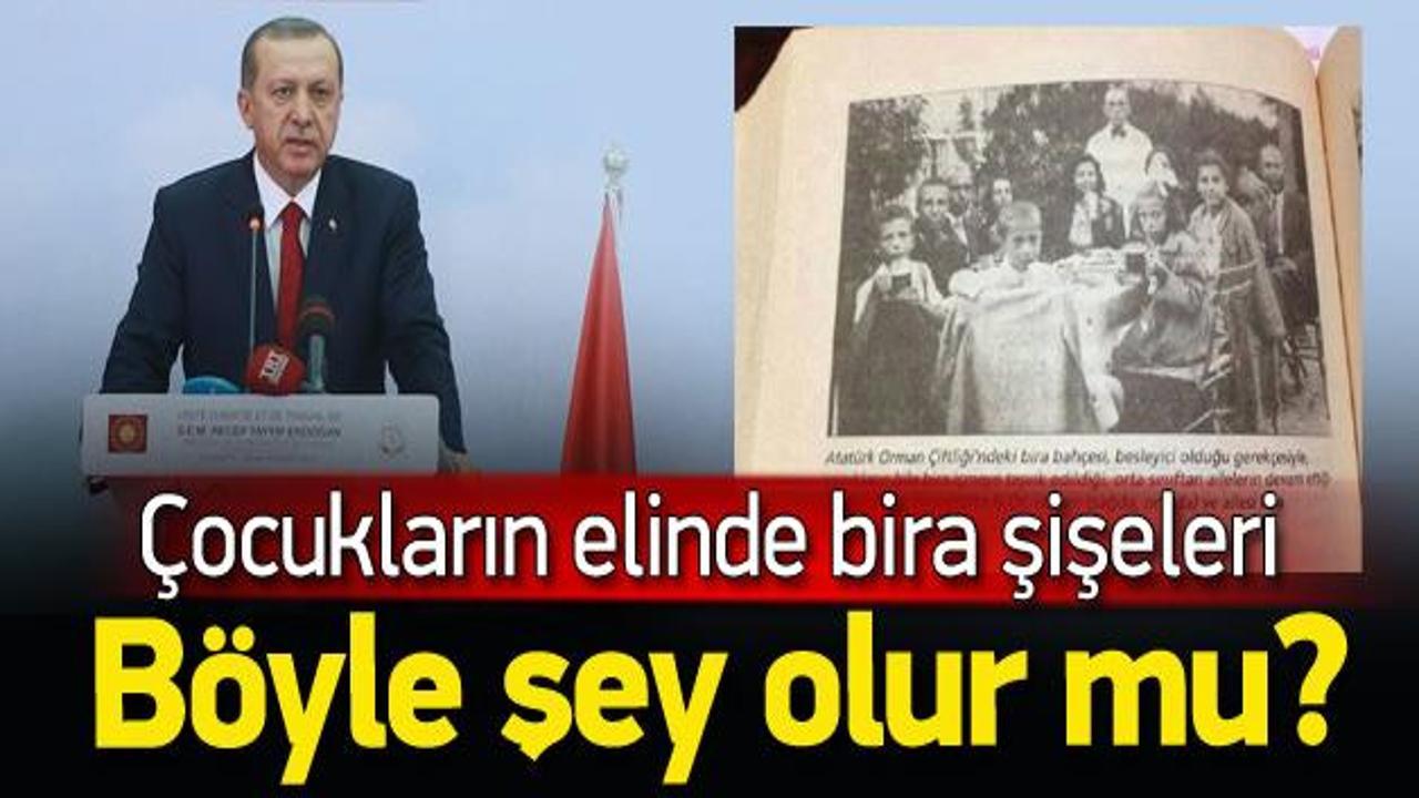 Cumhurbaşkanı Erdoğan konuşmasında, "Tarih kitaplarını karıştırdığınızda maalesef, Atatürk Orman Çiftliği'nde ellerine bira şişeleri tutuşturulmuş çocuk fotoğrafları görürsünüz" dedi.