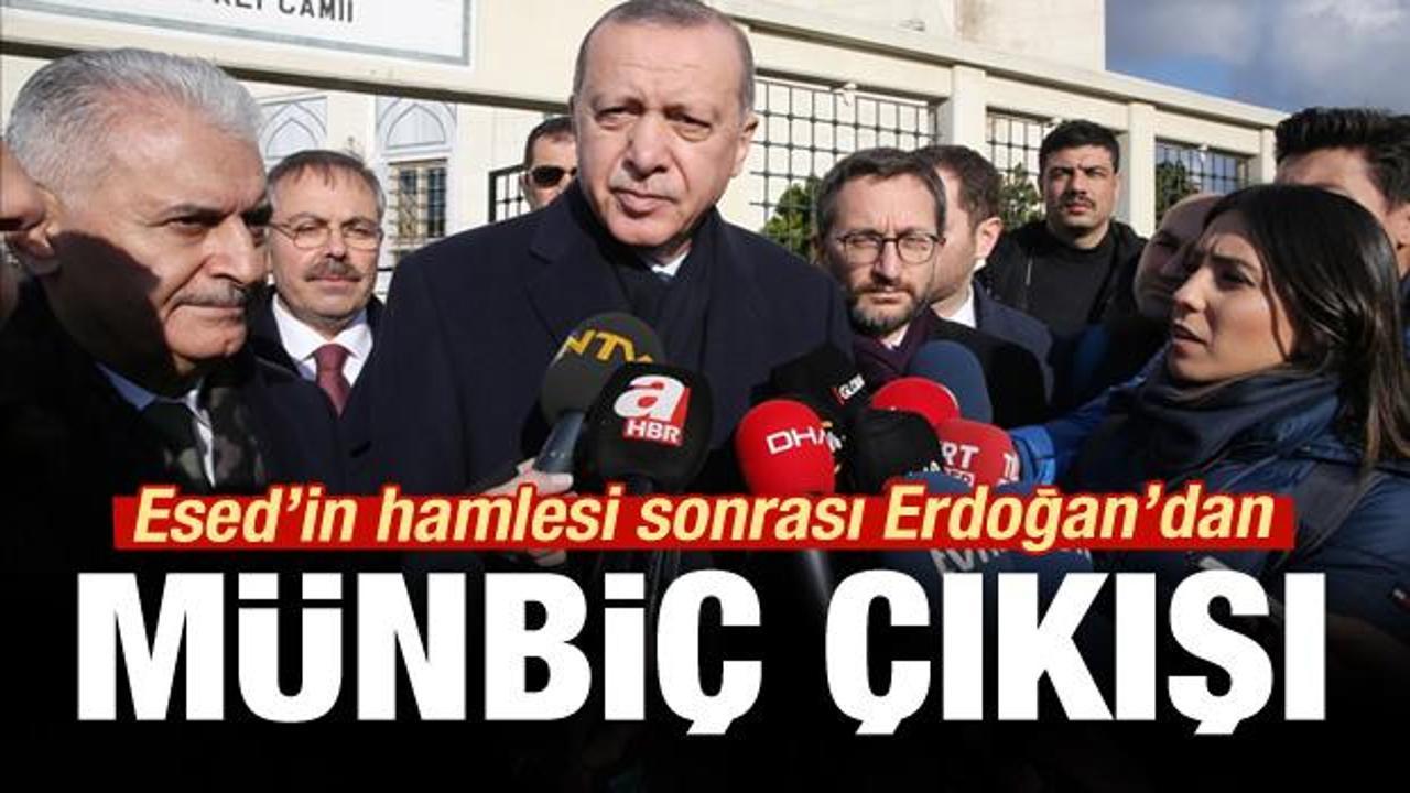 Cuma namazı çıkışında gazetecilerin sorularını yanıtlayan Cumhurbaşkanı Recep Tayyip Erdoğan, Esed güçlerinin Münbiç hamlesiyle ilgili "Suriye'nin Münbiç'e yönelik piskolojij bir eylem içerisinde olduğunu biliyoruz. Orada kendi bayrağını dalgalandırmak gibi bir durumun olduğunu biliyoruz.Ortada kesinleşmiş bir şey yok. 1 saat kadar önce arkadaşlarımızla görüştük, kesin bir şey söz konusu değil. Tabi Rusya'nın bu noktada ciddi resmi makamların ifade ettiği gibi de orada da bu şekilde kesinleşmiş bir şey yok. " açıklamasında bulundu.