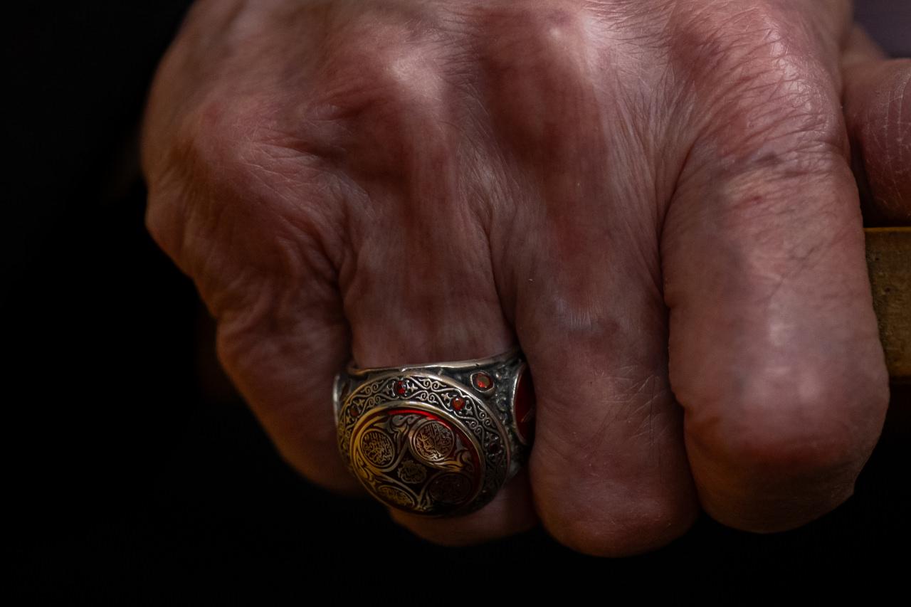 - Yüzük de benzer tasarıma sahip olup, Fettahoğulları aile mührü, Besmele ve surelerle süslenmiş, yan kısımlarında ise Bahçeli'nin tuğraları bulunuyor.