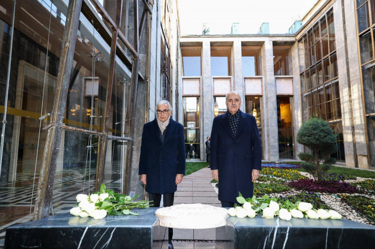 TBMM Başkanı Kurtulmuş ile Portekiz Cumhuriyet Meclisi Başkanı Aguiar-Branco görüşmelerin ardından 15 Temmuz darbe girişimi sırasında TBMM’deki bombalanan alanları ziyaret ederek, karanfil bıraktı.