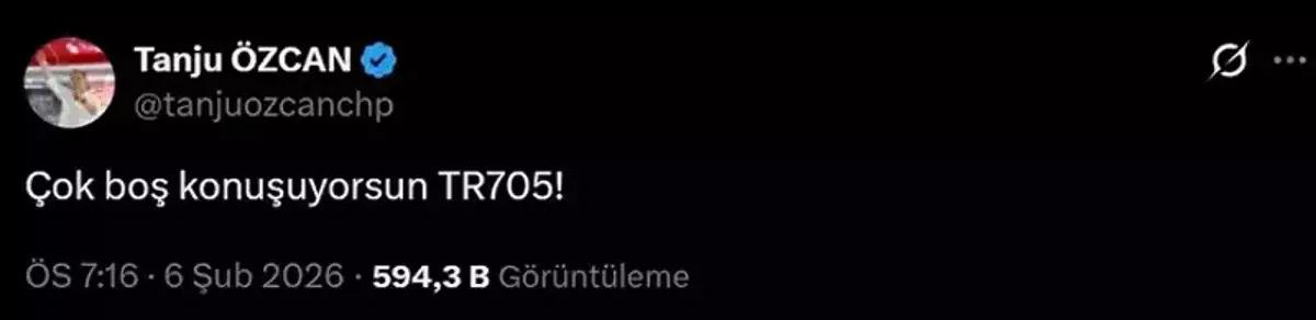 Bu konuşmanın ardından Bolu Belediye Başkanı Tanju Özcan, sosyal medya hesabından Tanrıkulu'yu hedef alan bir paylaşımda bulundu. Özcan, X hesabından yaptığı paylaşımda, Tanrıkulu'na hitaben, 'TR705' ifadesini kullanıp, "Çok boş konuşuyorsun" dedi.