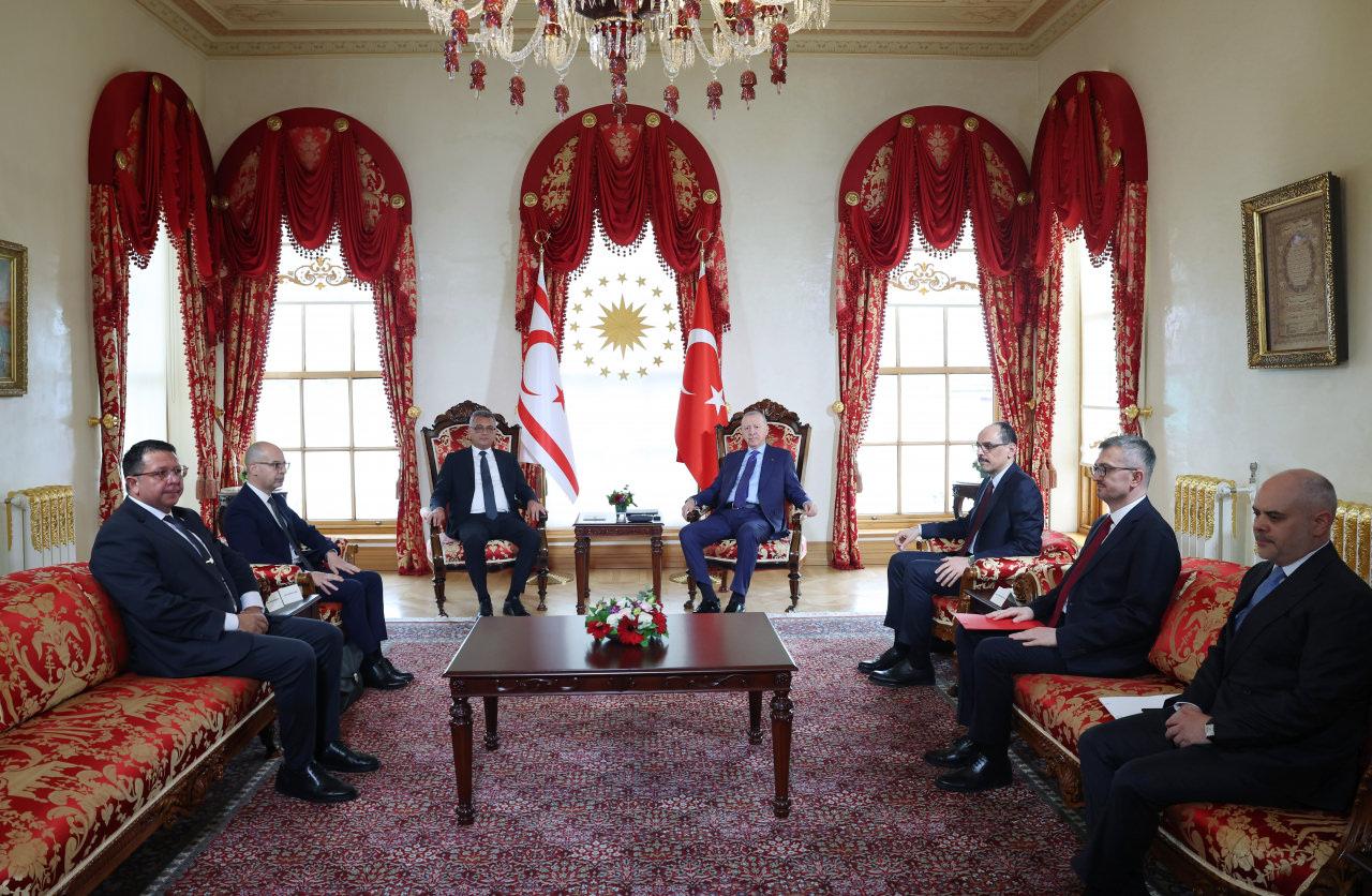 Cumhurbaşkanı Erdoğan Kuzey Kıbrıs Türk Cumhuriyeti (KKTC) Cumhurbaşkanı Tufan Erhürman ile Cumhurbaşkanlığı Dolmabahçe Ofisi'nde bir araya geldi.