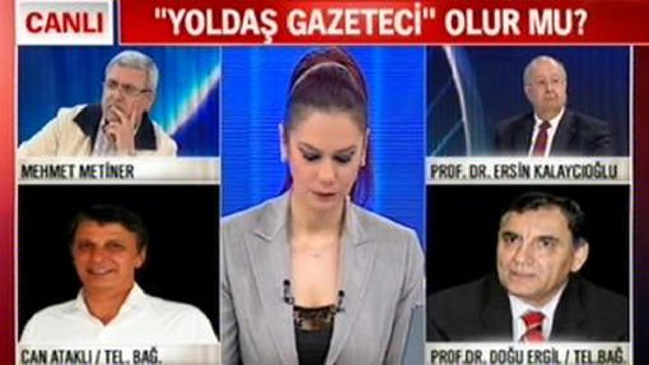 Erdoğan'ın 'Yoldaş gazeteciler belli oldu' sözünün masaya yatırıldığı programa telefonla bağlanan Vatan gazetesi yazarı Can Ataklı, hükümete yakın oduğnu iddia ettiği yazarlara hakarete varan sözlerle eleştirmeye kalkınca, Star gazetesi yazarı Mehmet Metiner araya girdi ve 'Hasysiyet dersi verecek son kişi' dediği Ataklı'nın Cem Uzan zamanında yaptığı gazeteciliği gündeme getirince Ataklı 'Ben gazetecilerle tartışırım' diyerek telefonla bağlandığı programı terketti.