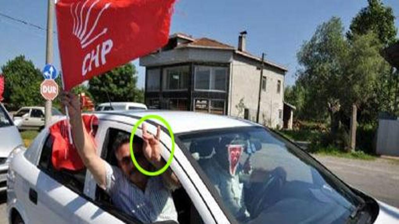 Vatandaşın bir elinde CHP bayrağı var diğer eli ile de MHP ile özdeşleşen bozkurt işaretini yapıyor. Yine aracın dikiz aynasında takılı olan MHP bayrağı ise dikkatlerden kaçmıyor. Bu fotoğraf karesi, "CHP ile MHP ortak miting mi düzenliyor?" sorusunu akıllara getirdi.