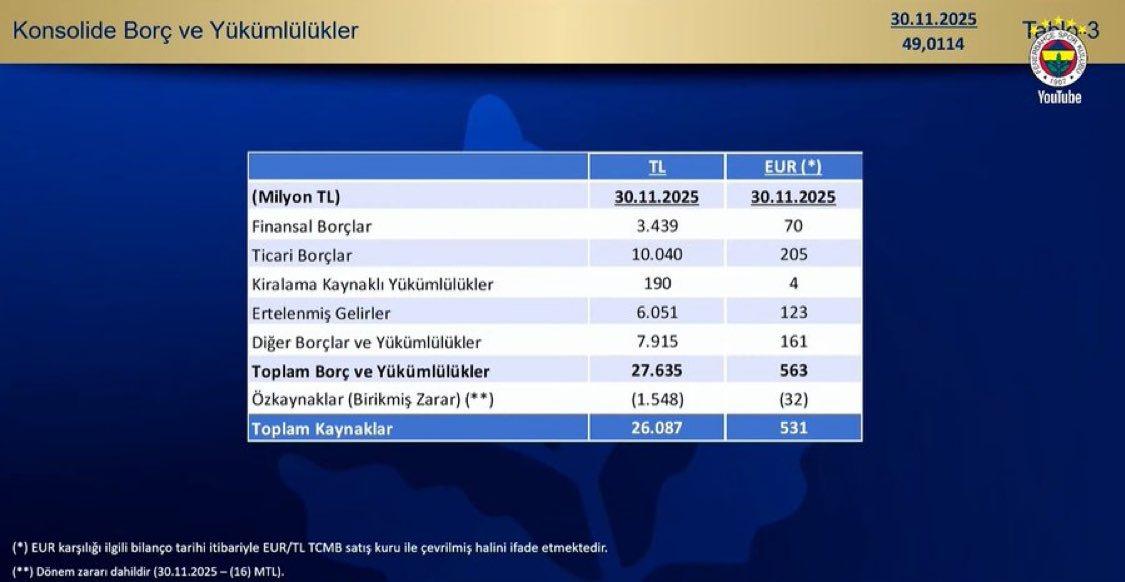Son dakika haberi.. Fenerbahçe Kulübü’nün borcu 27 milyar 635 milyon TL olarak açıklandı.