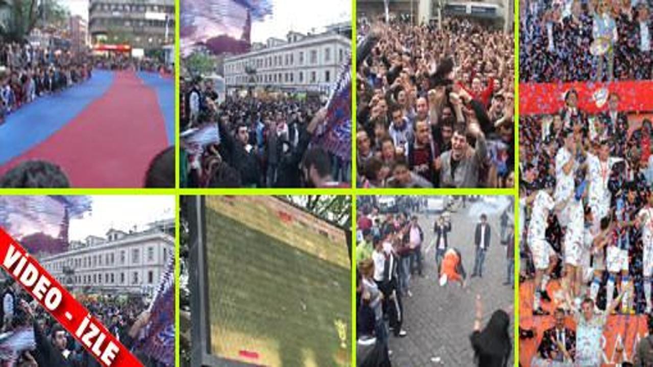 Onbinlerce Trabzonlu takımlarının final maçını kent meydanındaki dev ekrandan izledi. 2. ve 3. gollerle büyük sevinç yaşayan Trabzonlu'lar maçın bitiş düdüğüyle kenti bayram yerine çevirdi. İşte Trabzon'daki coşku: