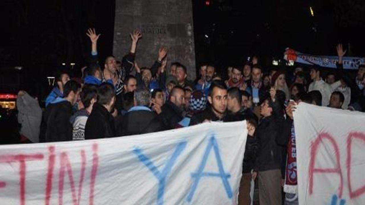 Futbolda şike davasına ilişkin kararların Yargıtay tarafından onanmasının ardından yaklaşık 100 kişilik bordo mavili taraftar grubu, Atatürk Alanı'nda toplanarak gösteri yaptı. 'Kupa gelsin kupa', 'Adalet istiyoruz' sloganı atan grup, geçtiğimiz günlerde bazı tribün liderlerinin 6222 sayılı yasa kapsamında stada girişlerinin yasaklanmasını da protesto etti. İki taraftar üzerine 'Suçu 6222'den idam' şeklinde yazılı kefen giyerek kararı eleştirdi. Trabzonspor lehine sloganlar atan ve meşaleler yakan grup eylemlerinin süreceğini dile getirdi.