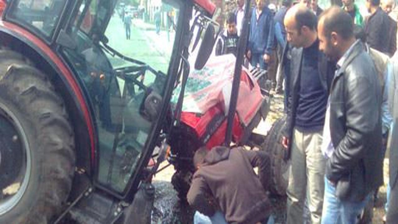 Karsın Sarıkamış ilçesinde seyir halindeki bir traktör ortadan ikiye kırıldı. Görgü şahidi İbrahim Atabey, düz yolda giden traktörün birden ikiye bölündüğünü söyledi.