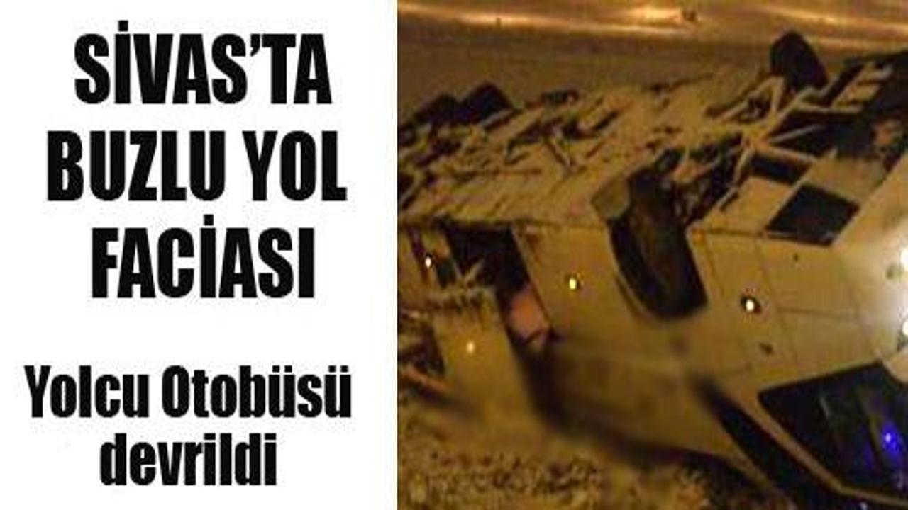 Konya'nın Ereğli ilçesinden Erzurum'a giden yolcu otobüsünün, Sivas'ta buzlanma nedeniyle devrilmesi sonucu ilk gelen bilgilere göre 1 kişi öldü, 25 yaralı var