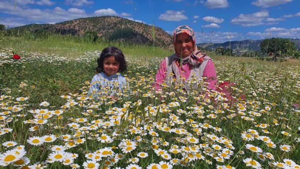 "Mayıs ayında papatya topluyor. İhtiyacımız kadarını çayını yapmak üzere ayırırız. Kalanını kurutup satarız. Papatyaları başlarından koparıp gövdesini bırakırız ki seneye daha çok olsun diye. Mahallemizdeki kadınlarla birlikte geliriz. Yılda 5 kiloya yakın toplayıp satıyorum. Geçen yıl kilosu 100 liraydı, bu yıl ise 260 liradan satılıyor."