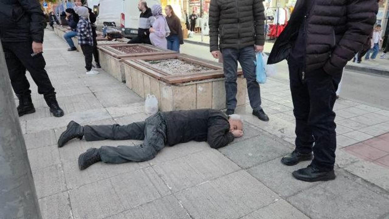 Şahsın yere yığılma anı çevredeki bir iş yerinin güvenlik kamerasına yansıdı.