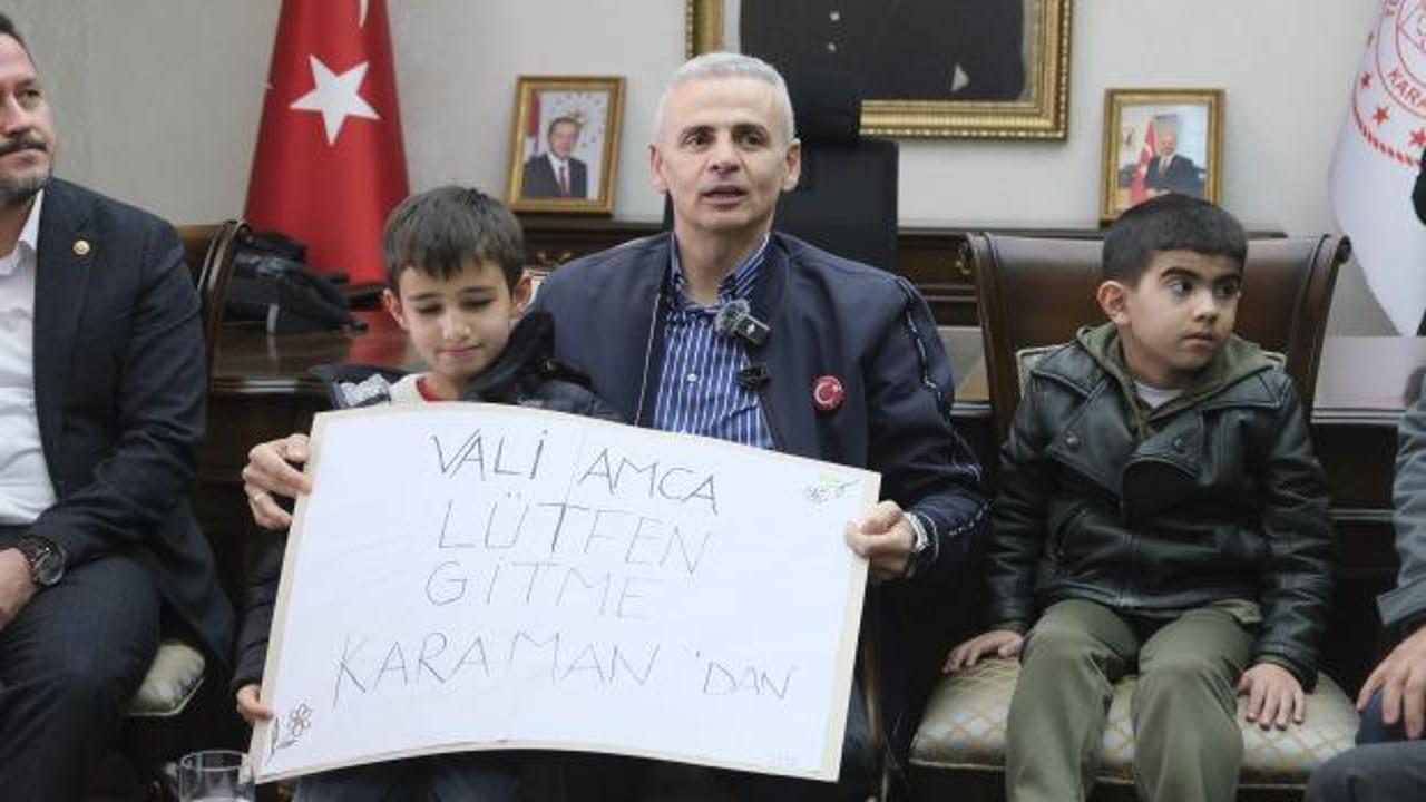 Uğurlama törenine gelen 9 yaşındaki Ömer Efe isimli bir çocuğun, üzerinde "Vali amca lütfen gitme Karaman'dan" yazılı pankartı Vali Çiçekli'ye vermesi salonda duygusal anların yaşanmasına neden oldu.