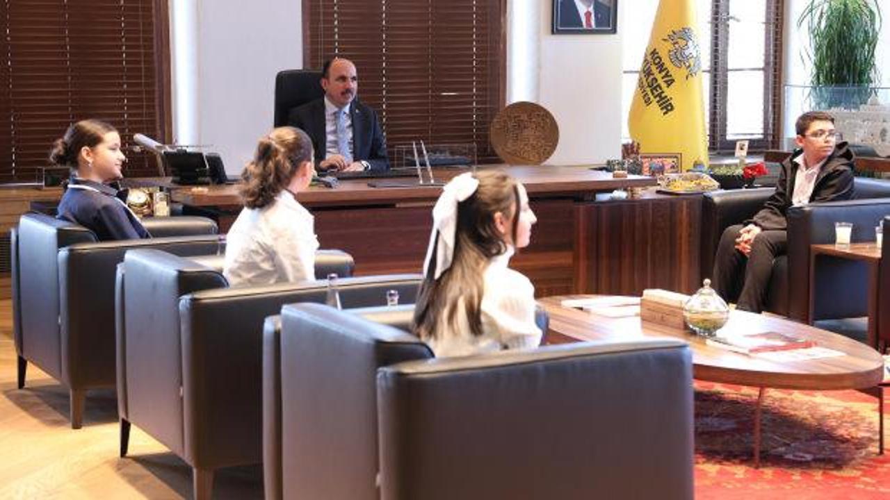 Konya Büyükşehir Belediyesi Çocuk Meclisi Başkanı İnci Kaşıkçı ve Meclis üyesi çocuklar Başkan Altay’ı ziyaret etti.