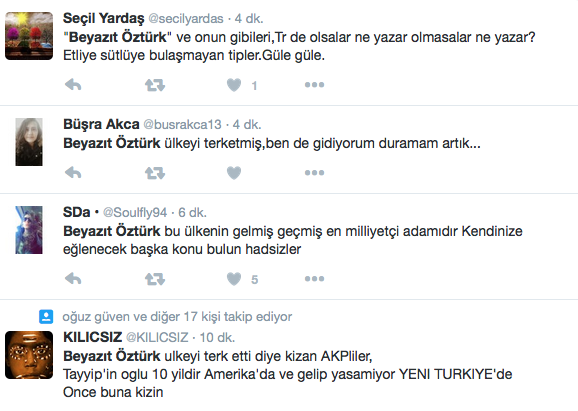Türkiye'nin geçtiği şu hassas dönemlerde, kendisinin hazırlayıp sunduğu şov programında canlı yayına bağlanan bir provokatöre karşı belki istemeden de olsa zafiyet gösteren ve gayet tabi bir şekilde eleştiri oklarının hedefi olan, bu sebeble de uzun süredir gözlerden ırak olan ünlü şovmen Türkiye'yi terk etti. Beyazıt Öztürk İspanya'nın ünlü şehirlerinde Barcelona'ya taşındı.Yirmi yıldır gibi bir süredir sunduğu ‘Beyaz Show’daki geçtiğimiz günlerde yaşanan o nahoş olay sonrası morali bozulan Beyazıt Öztürk, çareyi yurtdışına yerleşmekte buldu. Sadece çekimler için Türkiye’ye gelen Beyaz, program bitiminde ilk uçakla Barcelona’ya uçuyor.