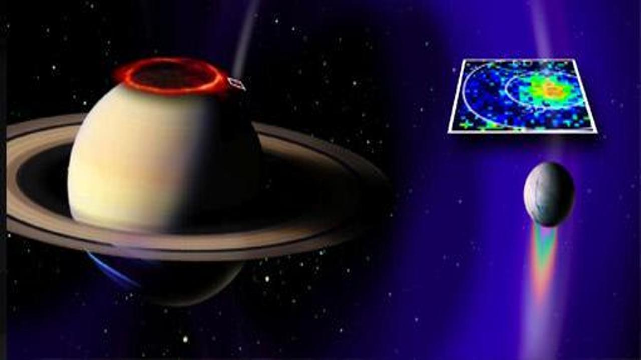 NASA'nın Cassini uzay aracı tarafından tespit edilen bu fotoğraf, Saturn ve uydusu Enceladus arasındaki manyetik bağlantıyı (elektriksel bağlantıyı) göstriyor.