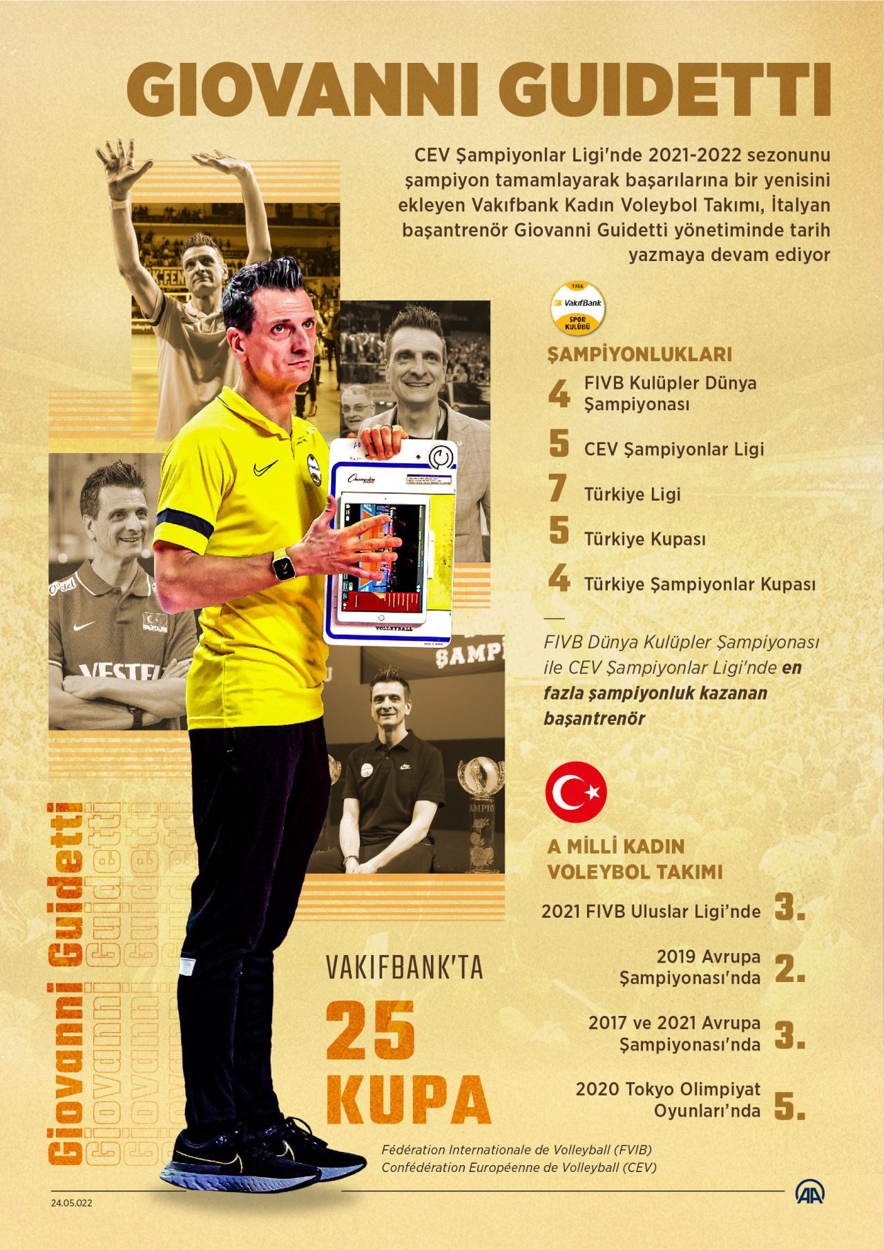 VakıfBank, bu kupaların 25'ine Giovanni Guidetti idaresinde ulaştı.