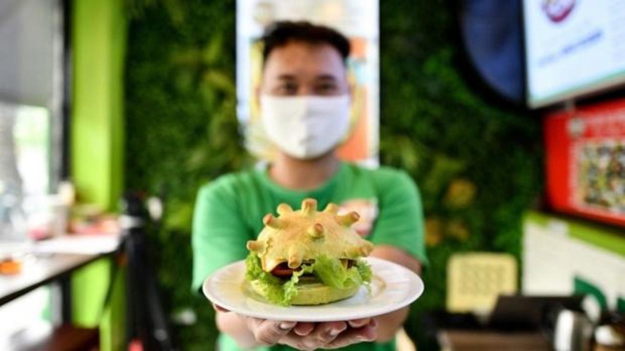 Vietnam’ın başkenti Hanoi’de bir şef, corona virüs görünümüne özel hamburgerler üretip müşterilerinin beğenisine sunuyor.
