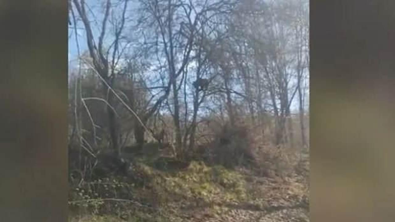 Sesin geldiği bölgeye gittiğinde Kangal köpeklerinden korkan bir ayının ağaca çıktığını gören Açıkel, bu anı cep telefonu kamerasıyla kayda aldı.