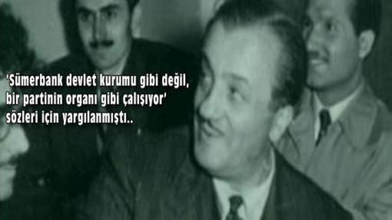 Sanık Necip Fazıl Kısakürek, Sümerbank'a hakaret ettiği gerekçesiyle üç buçuk ay hapis, 115 lira para cezasına çarptırıldı.