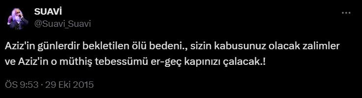“Aziz’in günlerdir bekletilen ölü bedeni... Sizin kâbusunuz olacak zalimler ve Aziz’in o müthiş tebessümü er geç kapınızı çalacak.”