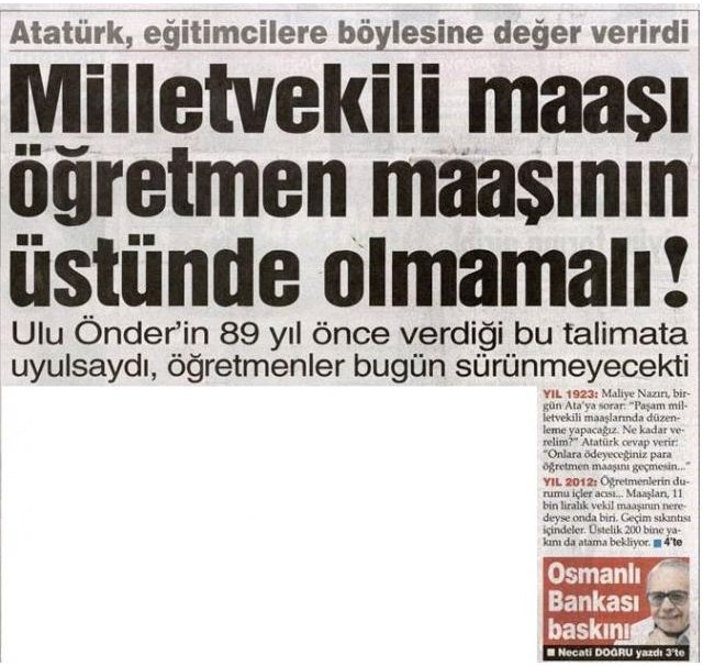 Bir başka yalan da ATATÜRK’ün öğretmen maaşlarının milletvekili maaşı ile eşit olmasını istemiştir.