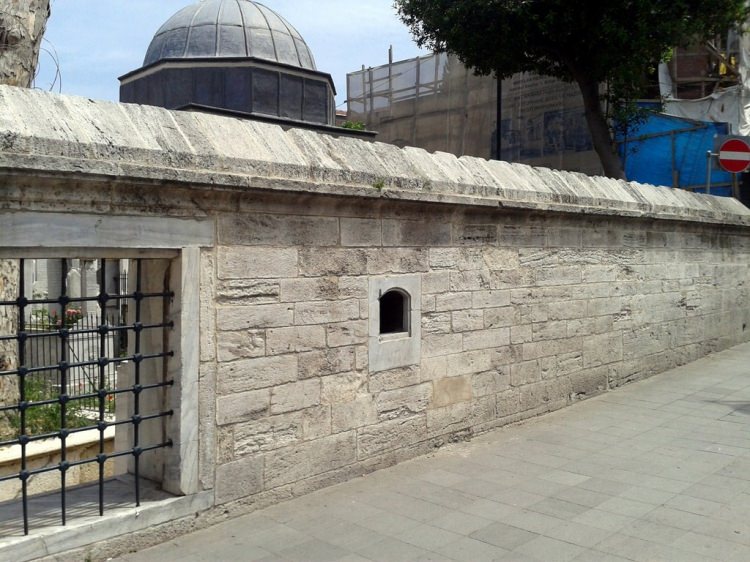 Şehzadebaşı Camii’nin Vezneciler istikametindeki dış duvarında bulunan sadaka deliği