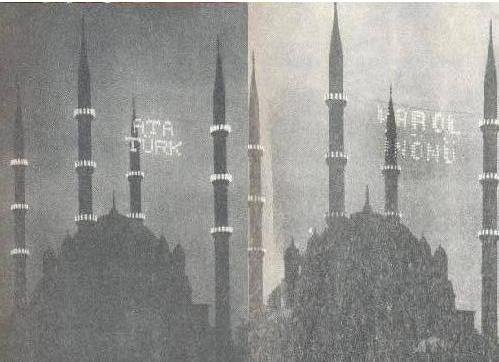 Kısacası Türkiye’nin tek parti rejimi ile idare edildiği yıllarda din siyasete alet edilmiş ve edilirken de bir beis görülmemiştir. Dolayısıyla lâiklik tanımı da mahyalar gibi hava da kalmıştır. O senelerde Laiklik anlamında asıl sorun, dinin devlet işlerine karışması değil, devletin din işlerine karışmasıdır.[2] Hatta “Cumhuriyetin '30. yıl kutlu olsun”, Edirne Selimiye Camii'ne 'Atatürk' ve 'Var ol İnönü' mahyaları bile asıldı.[3]