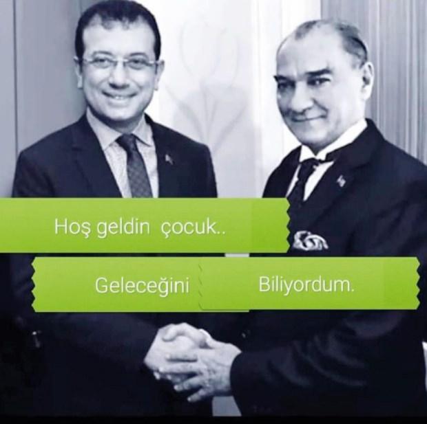 Sosyal medyada ve Whatsapp gruplarında paylaşılan bir de görsel var. Açıkçası bunu görünce çok gülemedim, paylaşanların duygusal ve ruhsal sağlıkları için endişelendim. Görselde, Ekrem İmamoğlu’nu teknoloji marifetiyle Atatürk’ün yanına iliştirmişler. Atatürk, yeni Başkan’ın elini iki elinin arasına almış. Demiş ki: “Hoşgeldin çocuk... Geleceğini biliyordum.” Yılmaz Özdil beyin Atatürk büstüne sarılıp çektirdiği fotoğraf bile daha naifti…