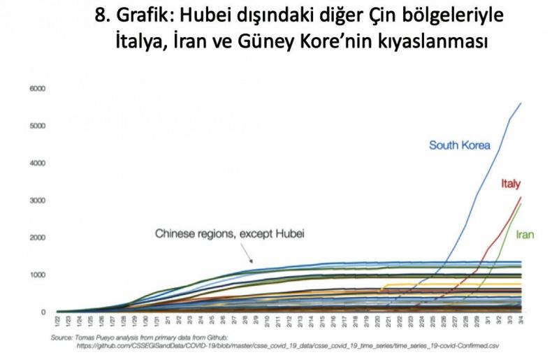 Çin’de bugün gelinen durum malumunuz… Hayat normale dönmeye başladı. Bunda hem kazandıkları tecrübe hem de devreye soktukları kapsamlı acil durum önlemlerinin etkili olduğu söyleniyor. Sonuçta varılan nokta, İtalya, Güney Kore ve İran gibi ülkelerde hasta sayısının katlanarak artması karşısında Çin’deki seyrin sakinliğini koruması şeklinde cereyan etmiş…
