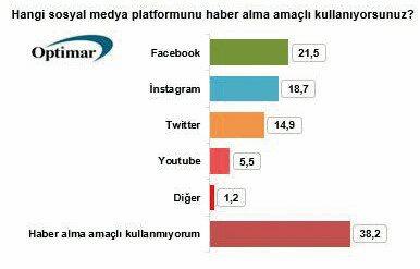 Yukarıdaki grafikte görüldüğü gibi, bu mecraların ‘haber alma’ amaçlı da kullanıldığı anlaşılıyor… Böyle bir işlevi de olan sosyal medya platformlarının yalanları, diğer tüm medya organlarından daha hızlı yaydığı da düşünülünce ‘başı boş’ bırakılacak yerler olmadığı daha net anlaşılabilir herhâlde…