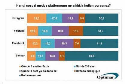 Sosyal medya artık yaşam alanımızın bir parçası, nasıl ki televizyon için şiddet ve istismara yönelik yayınlarla ilgili düzenlemelerin olmaması mümkün değilse burada da aynı özenin gösterilmesi gerekiyor. Aşağıdaki grafiğe bir göz atınız… “Sosyal medya kullanmıyorum” ve “Haftada birkaç gün kullanıyorum” diyenlerin oranını dışarıda bırakıp, diğerlerini toplandığımızda yaşamın nasıl da büyük bir parçası olduğu daha iyi anlaşılacaktır