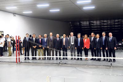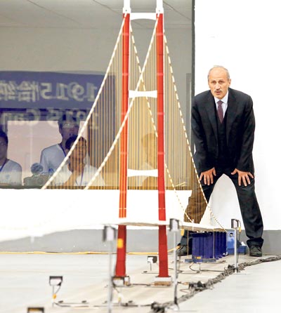 Chengdu eyaletinde dünyanın en büyük rüzgâr testi laboratuvarı olan South West Jaotong Üniversitesi Rüzgâr Mühendisliği Araştırma Merkezi’ndeki teste Bakan Cahit Turhan’ın yanı sıra bürokratlar ile köprüyü inşa eden Çanakkale Otoyol ve Köprüsü İnşaat Yatırım ve İşletme AŞ’nin ortakları katıldı.