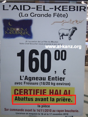 Reklamlardan gördüğüm kadarı ile Türkiye'de de şubesi bulunan bu büyük marketler Kurban “işi” yapıyormuş. Yüz binlerce hayvanın kesildiği o gün nasıl başarıyorlar da aynı gün teslim edebiliyorlar? Müslümanlar dikkat etmek zorundadır. Helal yemek sadece bir kesim şekli değildir. Helal lokma demek sadece parasını vermek demek değildir.