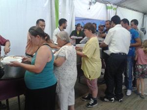 Birbirlerinden duyarak “bedava yemekten” faydalanmak istiyorlar. Bir tabaktan sonra bir kez daha sıraya duruyorlar, çantalarına ekmek dolduruyorlar.