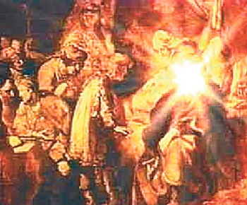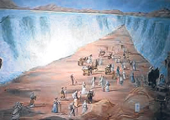 Hz. Musa’nın asasıyla denizi yararak Musevileri karşıya geçirdiği efsanesinin resmi.